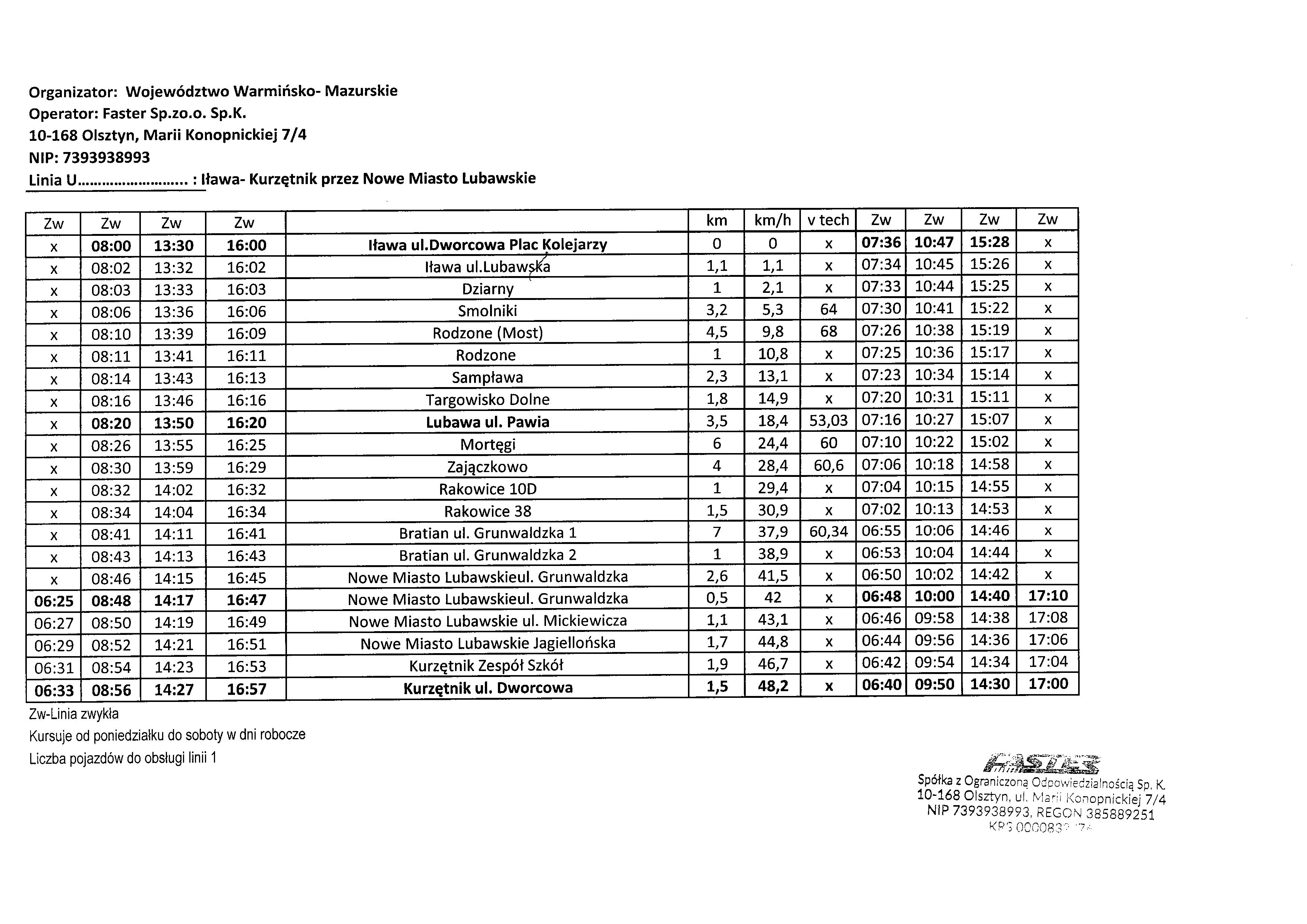 Rozkład Jazdy Iława - Kurzętnik przez Nowe Miasto Lubawskie