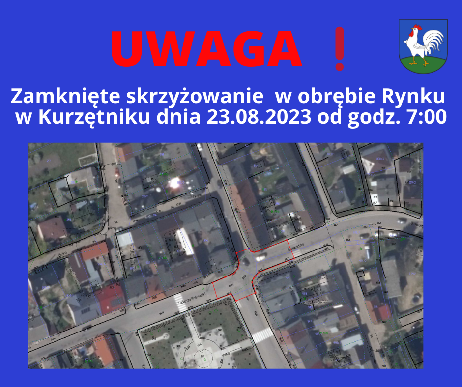 Zamknięte skrzyżowanie na rynku w Kurzętniku