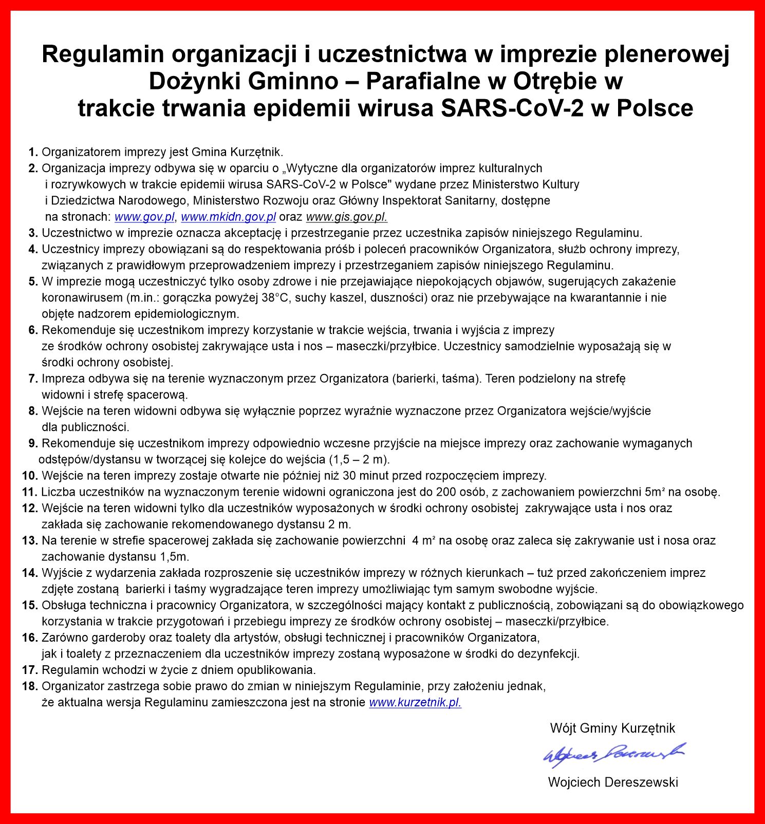 Regulamin organizacji i uczestnictwa w imprezie plenerowej Dożynki Gminno-Parafialne w Otrębie