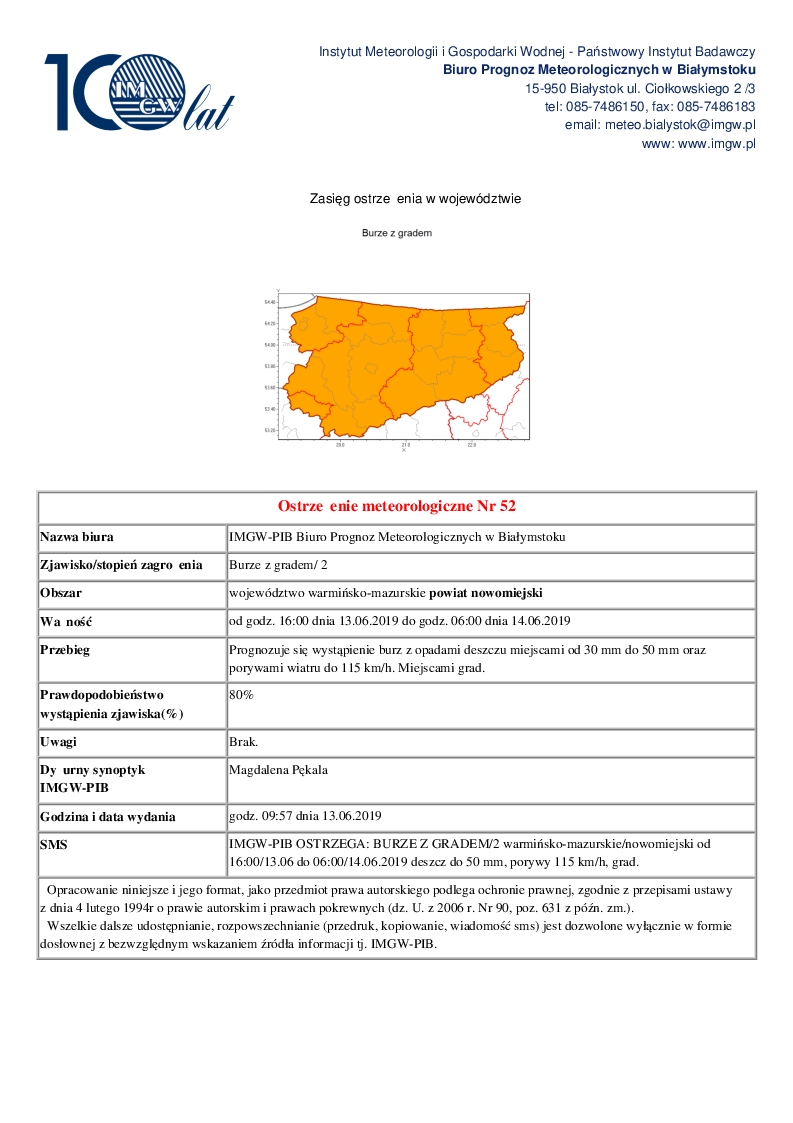 Ostrzeżenie meteorologiczne Nr 52