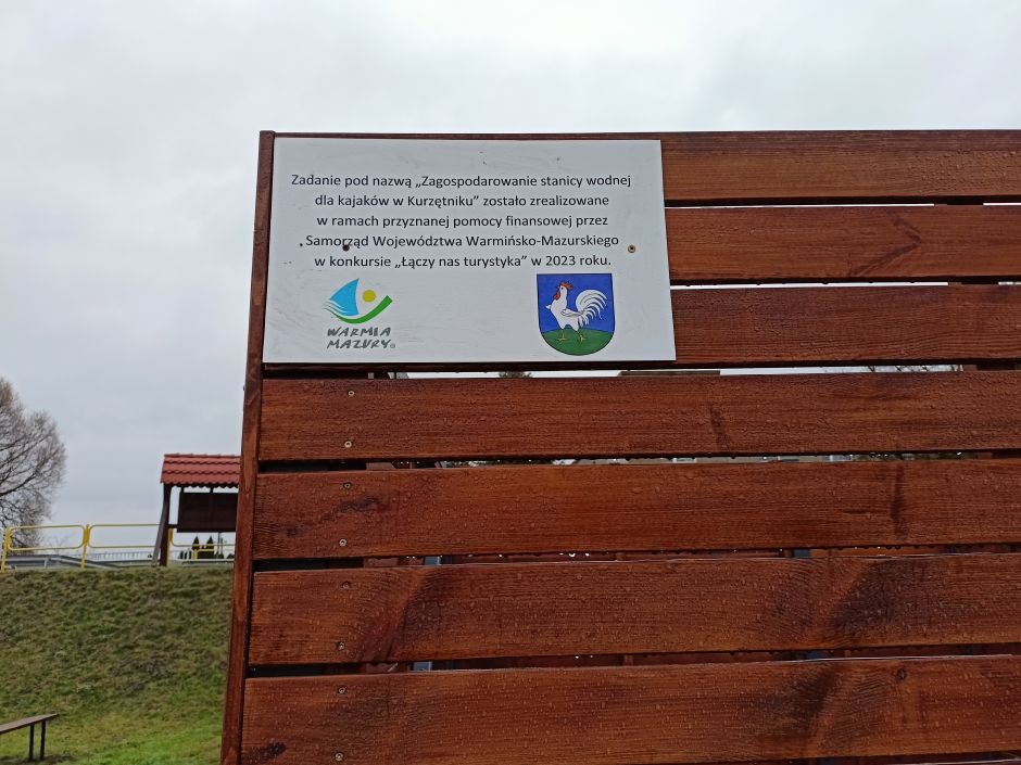 Dzięki wsparciu finansowemu Województwa Warmińsko-Mazurskiego w ramach konkursu „Łączy nas turystyka” w 2023 roku oraz środkom finansowym partnera projektu Zakładu Gospodarki Komunalnej Sp. z o.o. w Kurzętniku, Gmina Kurzętnik zrealizowała projekt polegający na zagospodarowaniu stanicy wodnej dla kajaków w Kurzętniku. W ramach projektu powstały dwie wiaty na kajaki, obudowa toalet przenośnych, dwa stoły piknikowe, trzy ławki, kosz na odpady oraz popielnica.