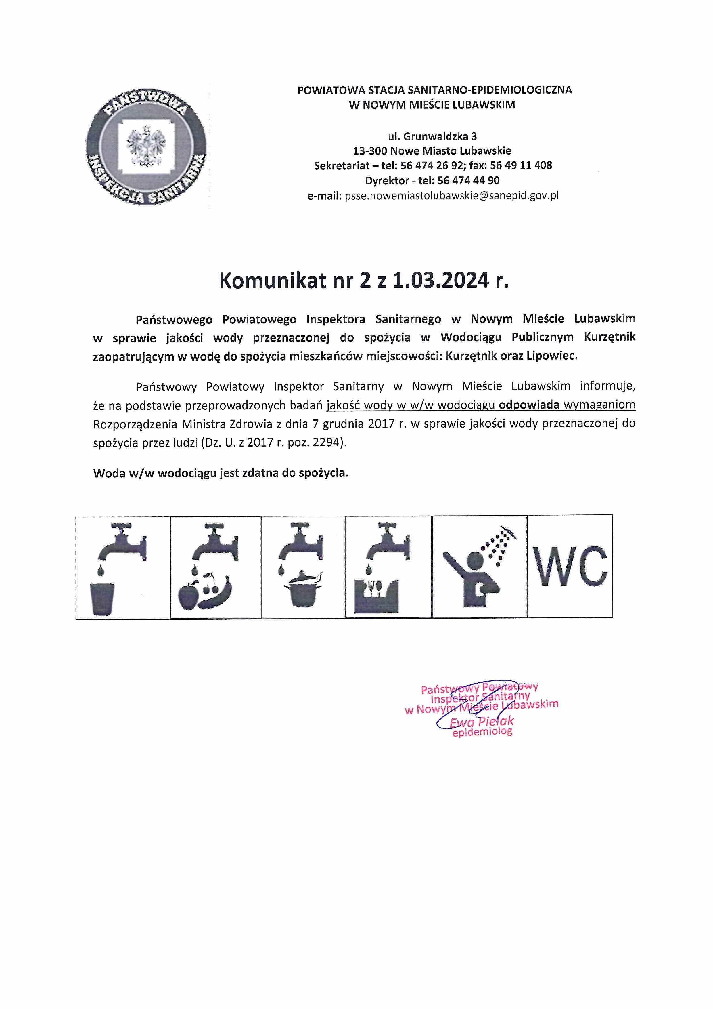 Powiatowa Stacja Sanitarno-Epidemiologiczna w Nowym Mieście Lub. przesyła w załączeniu Komunikat Nr 2 z dnia 1.03.2024 r.