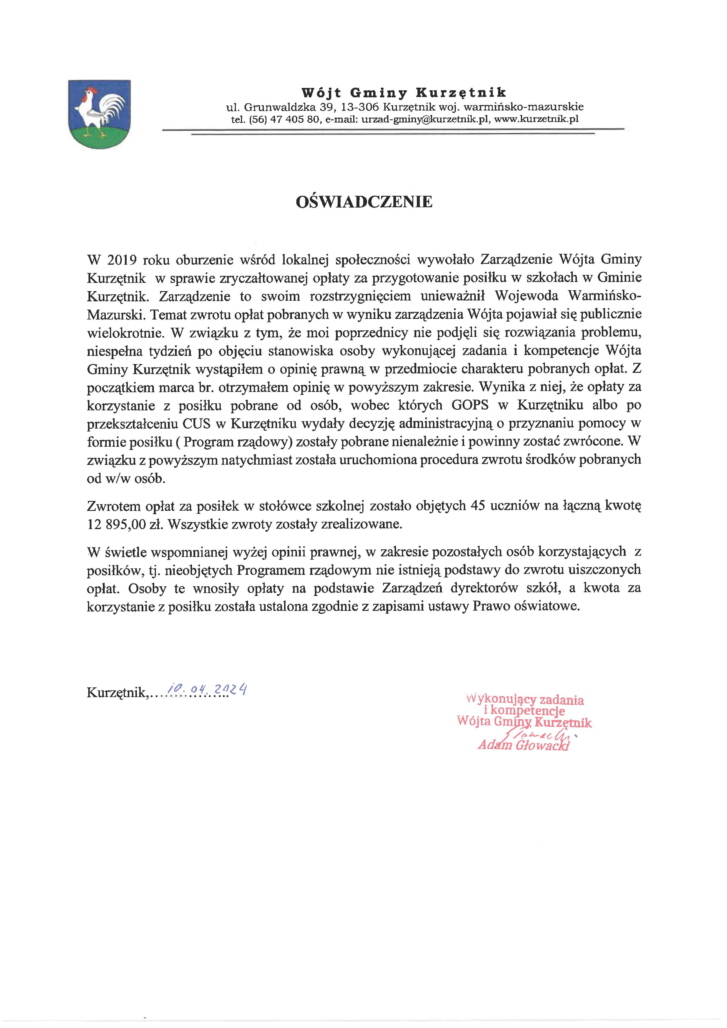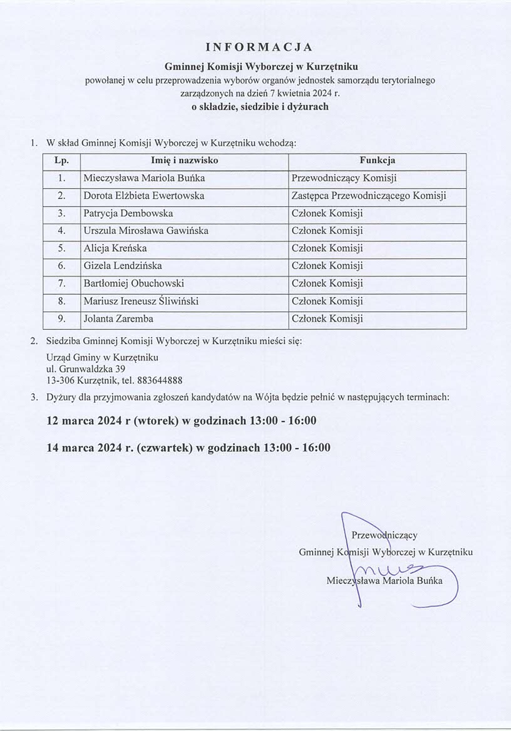 Informacja Gminnej Komisji Wyborczej w Kurzętniku