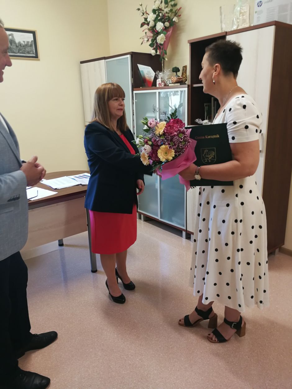 W dniu 10 sierpnia 2022 r. Pan Piotr Piątek – osoba wykonująca zadania i kompetencje Wójta Gminy Kurzętnik wraz z Panią Jolantą Haska – Kierownikiem Referatu Oświaty oficjalnie złożyli akt powierzenia stanowiska Dyrektora Szkoły Podstawowej im. Przyjaciół Ziemi w Marzęcicach Pani Katarzynie Pukalskiej na okres od 1 września 2022 r. do 31 sierpnia 2027 r.
