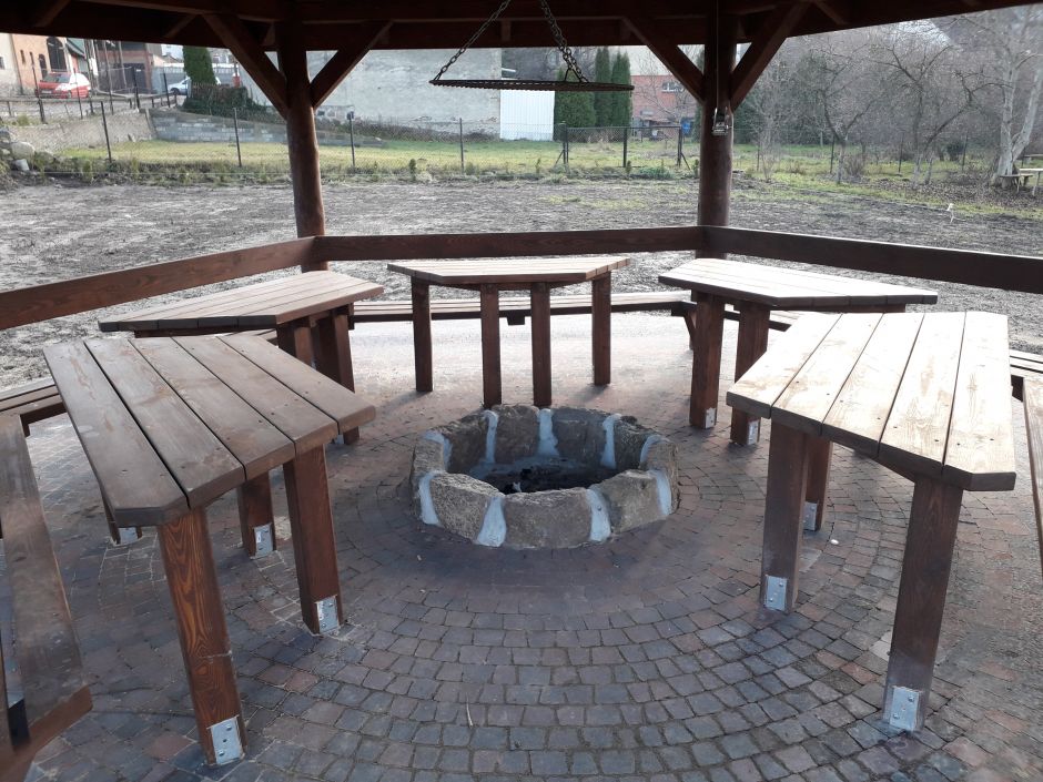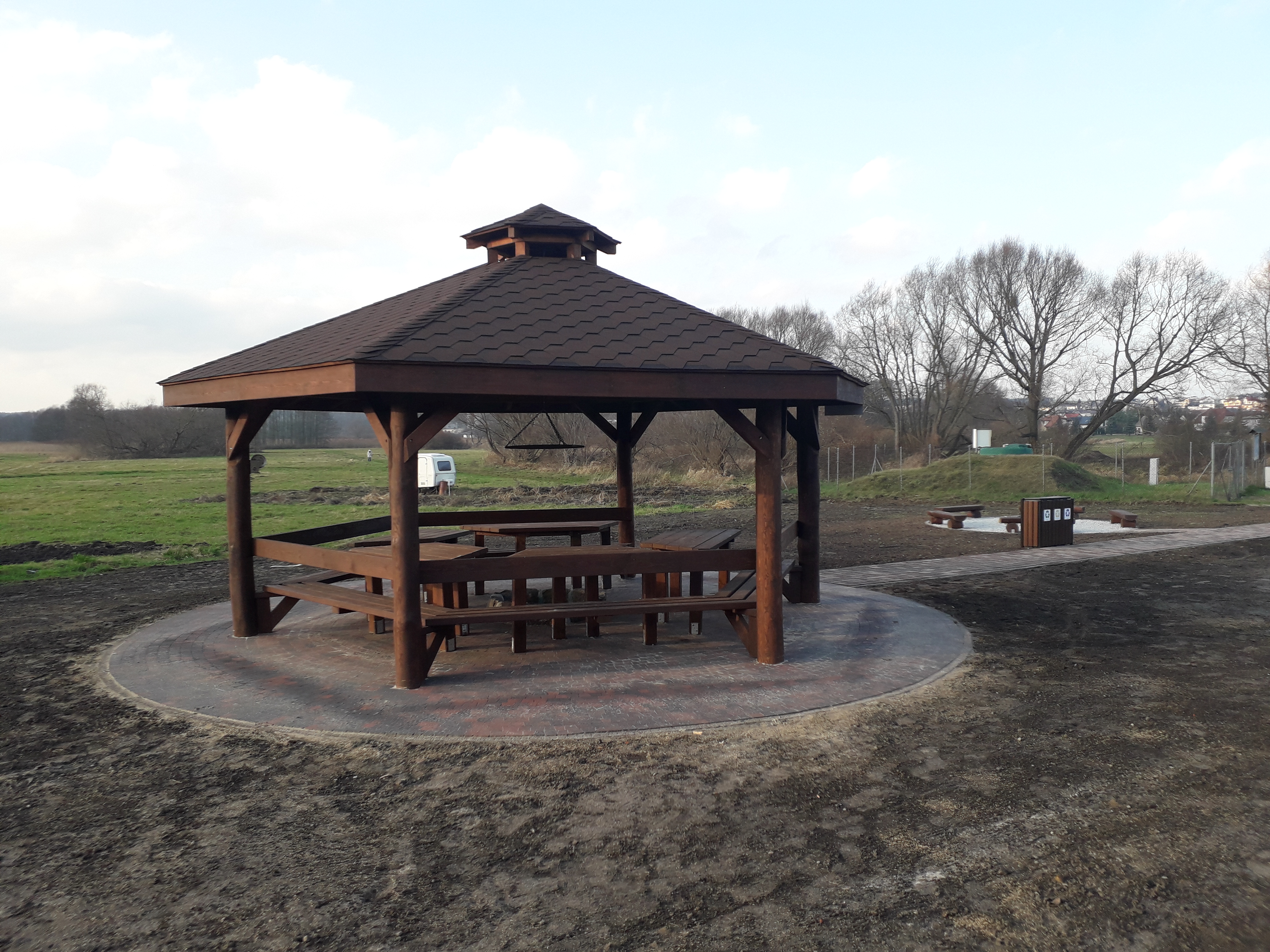W ramach zadania wykonano dużą altanę drewnianą ze stołami i ławkami. W środku altany powstało palenisko z grillem podwieszanym. Dodatkowo obok altany wykonano miejsce na ognisko z ławkami oraz zakupiono kosz do segregacji odpadów. Dzięki realizacji projektu powstało miejsce przyjazne kajakarzom z zadaszonym miejscem do spożywania posiłków oraz z bezpiecznym miejscem na ognisko.