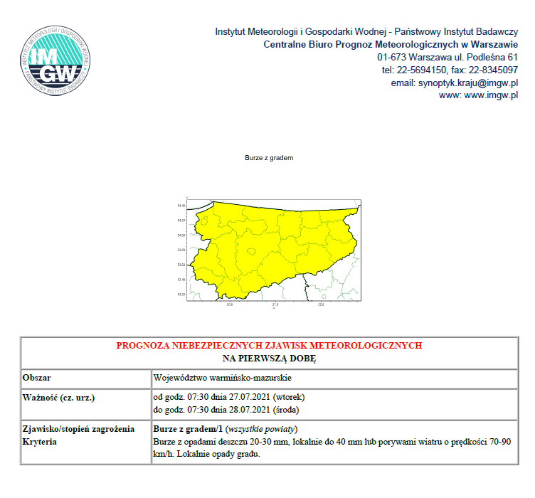 Burze z gradem 27-28.07.2021 r.