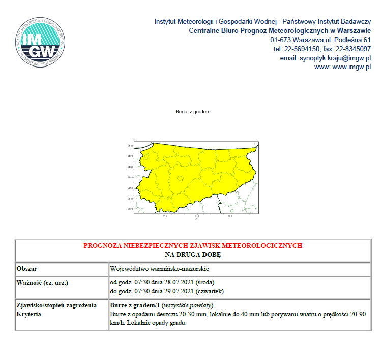 16.07.2021 r. - Burze z gradem
