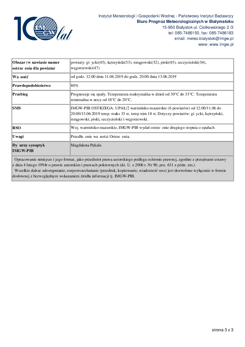 WOJEWÓDZTWO WARMIŃSKO-MAZURSKIE OSTRZEŻENIA METEOROLOGICZNE ZBIORCZO NR 95
