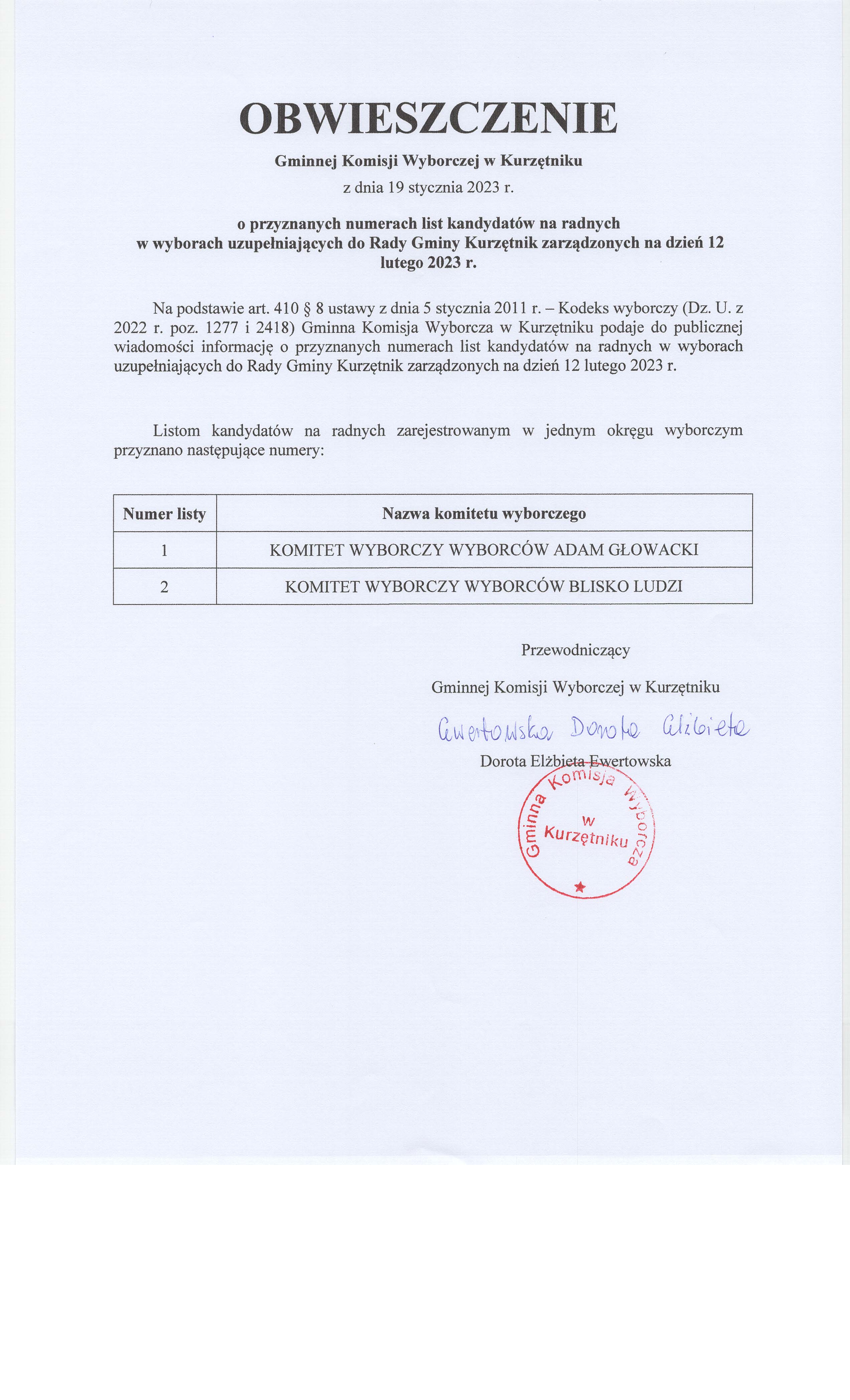Wybory Uzupełniające do Rady Gminy 2023