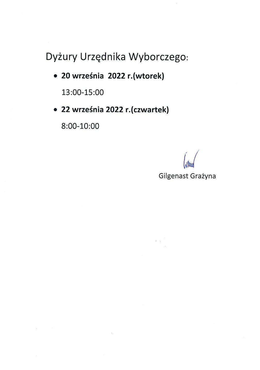 Informacja o dyżurach Gminnej Komisji Wyborczej